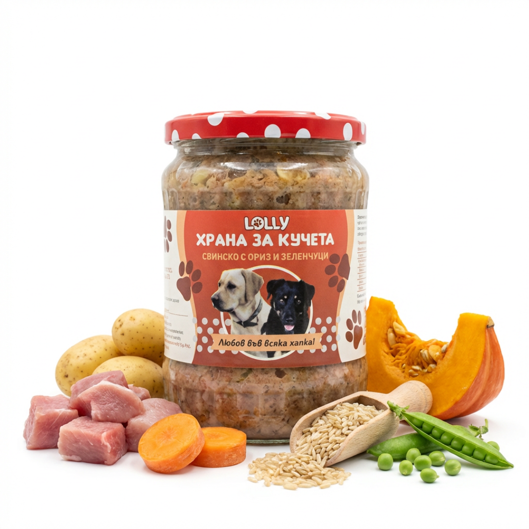 Натурална мокра храна за кучета със свинско месо и дроб